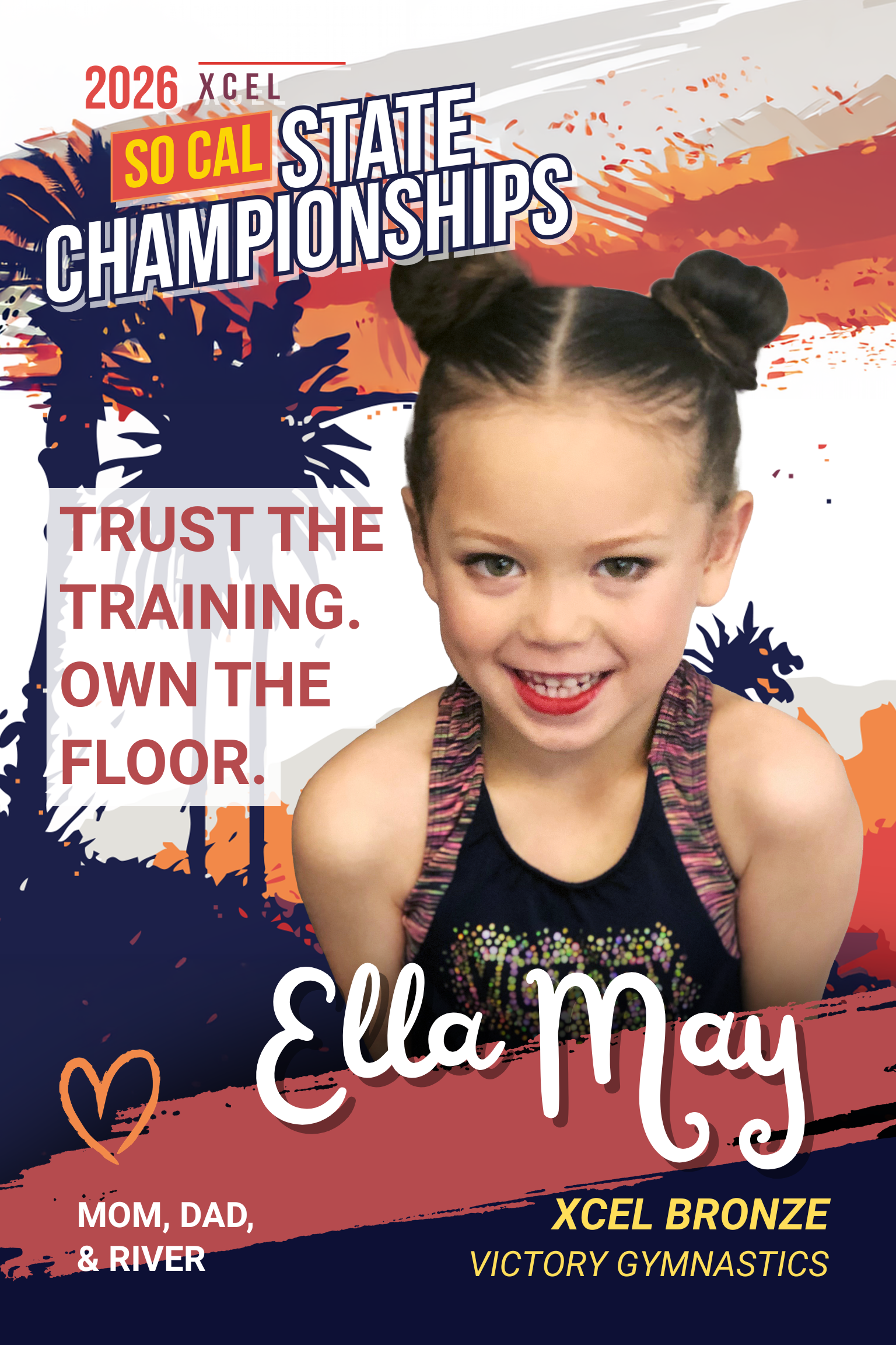 We’re excited to share a new partnership for the XCel State Championships. We’ll be offering FanBoards, fun, personalized signs families can order to cheer on their athletes during the meet.
